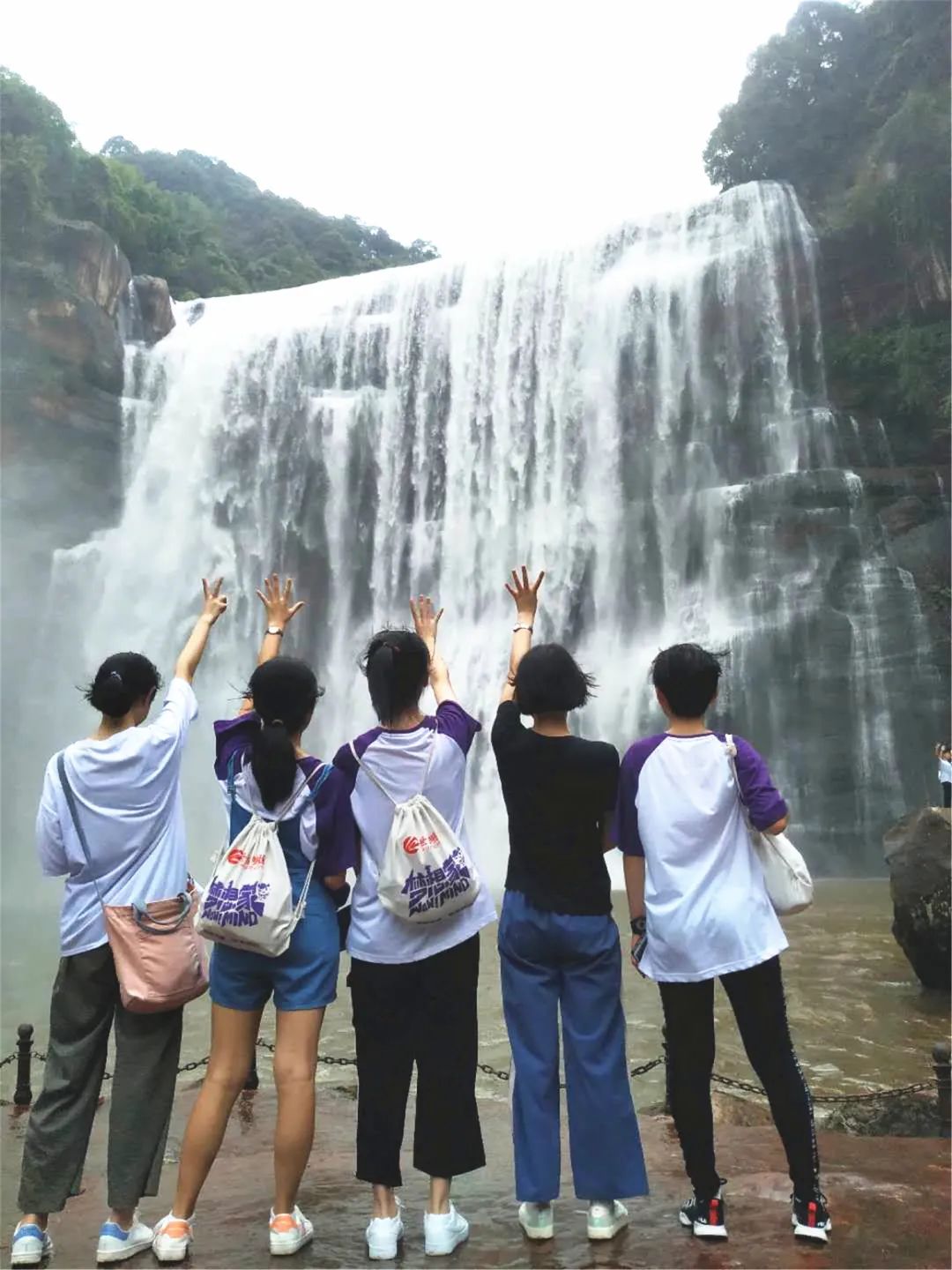 從石間縫隙中穿過,從山間小路上踏過,未見其景先聞其身,隆隆的聲響令人激動(dòng)不已。轉(zhuǎn)過一個(gè)角落,眼前驟然明亮,萬千白絲傾瀉而下,編織成白綾,似從天上拋下。白煙帶著飛濺的水珠撲面而來,宛如身體內(nèi)不斷沸騰的血液,回想幾天前走過的丙安古鎮(zhèn),參觀過的紅軍物品陳列館,不禁將兩者相聯(lián)。赤水瀑布傾瀉而下的是水流,是力量,是精神;嘶吼出的是氣勢,是心聲。悄悄的我走了,正如我悄悄的來,這一趟,我受益匪淺。